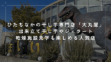 茨城といえば干し芋も有名ですね。那珂湊のおさかな市場から少し移動すると、「ほしいも専門店 大丸屋」という恐竜の大きなオブジェが目印の人気店があります。店内にはさまざまな種類の干し芋が並び、試食もできることがあります。甘みがしっかりしていて、お土産にもぴったりなので、散歩がてら立ち寄るのも楽しい場所です。